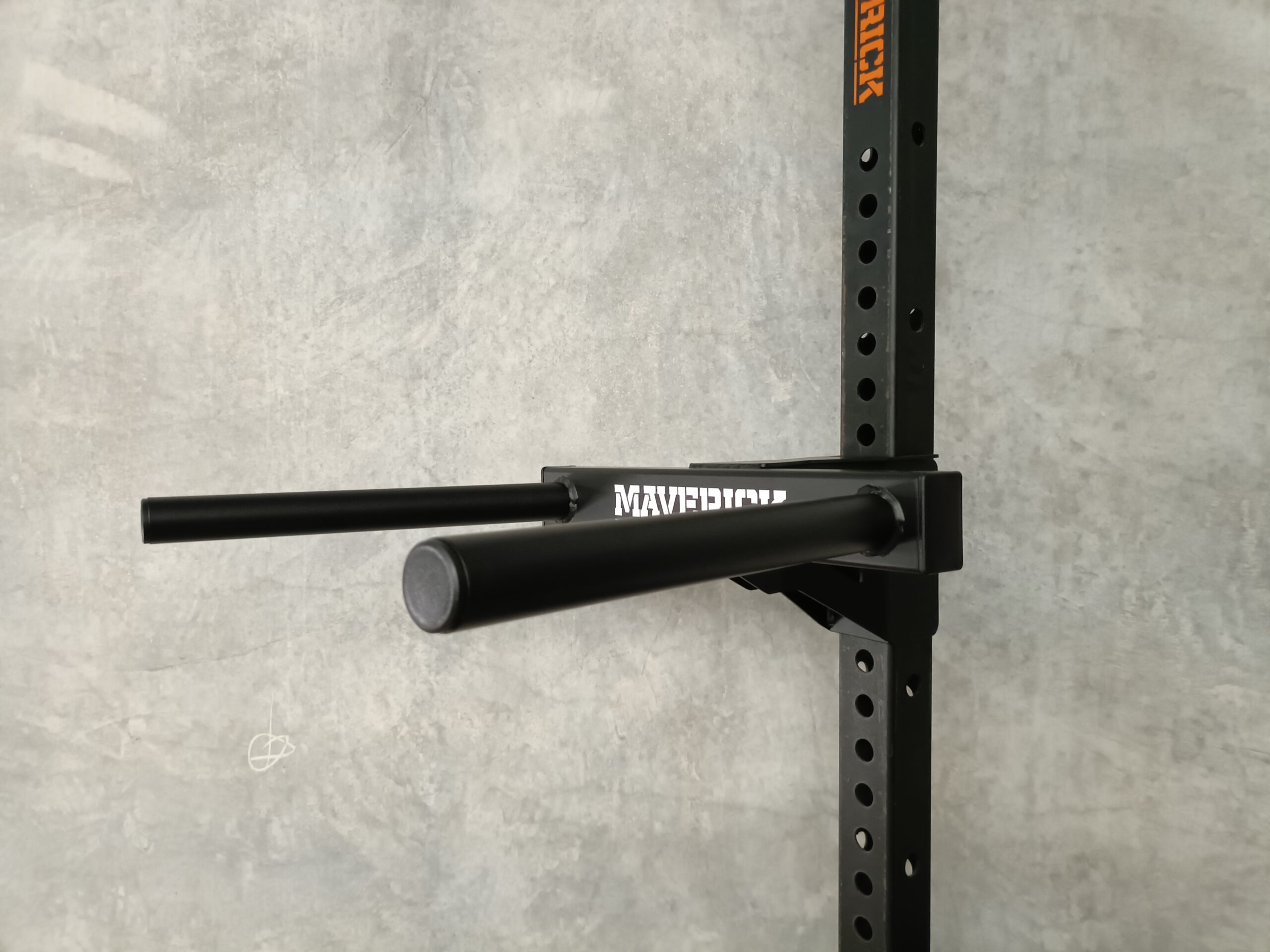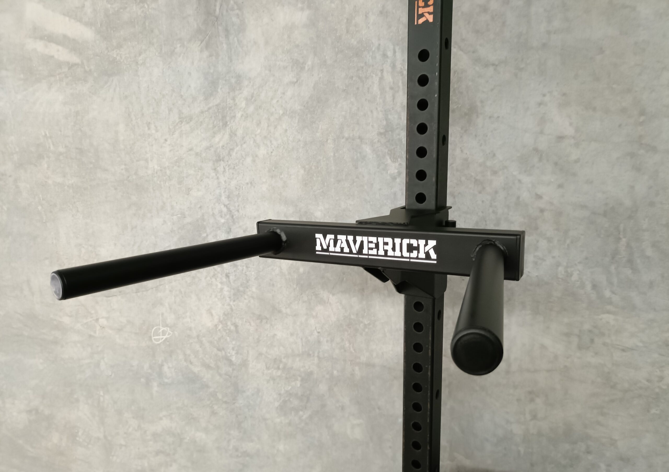 The Maverick Dip Bar (M-R75) has been designed to easily attach to the uprights of any M-R75 Maverick Rig can be removed or re-positioned in seconds.